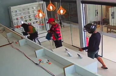 Dois homens armados assaltaram uma loja de venda de celulares, que fica dentro da Galeria Môa, logo depois do meio dia desta quinta-feira, 9, no