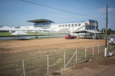 A estrutura do estádio Arena do Juruá, onde serão realizados a queima de fogos e os shows da virada, já está quase pronta em Cruzeiro