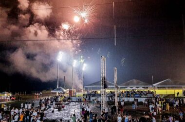 A queima de fogos na Arena do Juruá, em Cruzeiro do Sul, foi realizada debaixo de chuva. Muita gente prestigiou o evento, mas foi um
