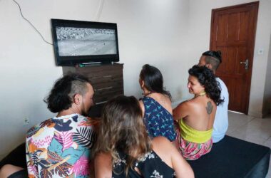 Os moradores da Rua Mâncio Lima no Bairro Aeroporto Velho em Cruzeiro do Sul assistiram ao jogo entre as seleções do Brasil e de Camarões