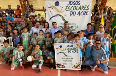 A fase municipal dos Jogos Escolares do Acre foi aberta nesta sexta-feira, 10, no ginásio Aderlan da Silva, pelo prefeito César Andrade e a representante