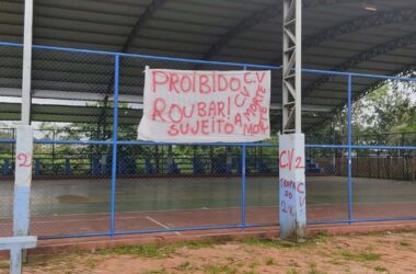 Nesta quinta-feira, 10, uma faixa onde estava escrito “Proibido Roubar Sujeito a Morte” com as iniciais da facção criminosa Comando Vermelho havia sido colocada por