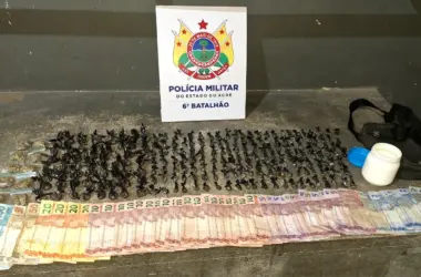 Mais de 200 embalagens com cocaína e 10 com maconha foram apreendidas pela Polícia Militar em uma escadaria no bairro Cohab, em Cruzeiro do Sul,