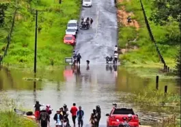 Parte da Rodovia AC-407, que dá acesso ao município de Rodrigues Alves, está interditado na manhã desta quinta-feira, 12, após um açude com barragem transbordar