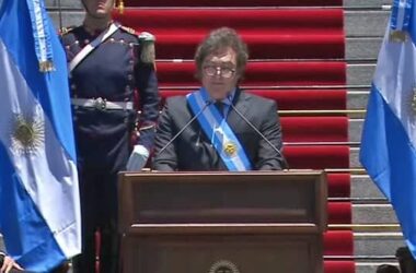 Em seu primeiro discurso como presidente argentino, Javier Milei quebrou o protocolo: saiu do Congresso e foi á praça em frente ao parlamento, para discursar