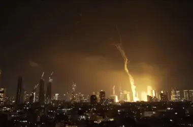 Um vídeo verificado pela CNN mostra o momento em que um míssil atingiu as proximidades de Kirya, uma área de Tel Aviv que abriga uma…