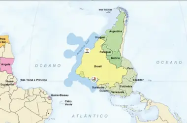 O Instituto Brasileiro de Geografia e Estatística (IBGE) lançou nesta semana o mapa-múndi oficial, de forma invertida, que novamente tem o Brasil no centro do