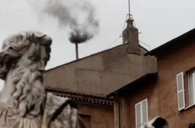 Já era noite no Vaticano, quando o chaminé da Capela Sistina soltou, nesta quarta-feira, 7, a primeira fumaça de cor preta, sinalizando o encerramento da