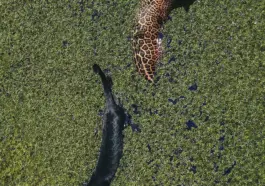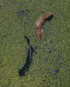 O fotógrafo Ygor Sobesi registrou uma cena incomum no Centro de Instrução de Guerra na Selva (Cigs), em Manaus: uma onça-pintada e uma “pantera-negra” nadando