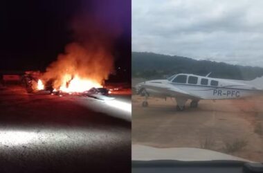 Um avião bimotor avaliado em R$ 2,2 milhões foi incendiado após ter sido apreendido pela Polícia Federal (PF) e pela Polícia Militar (PM) no aeroporto