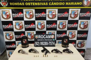 Cinco armas foram apreendidas pela Polícia Militar na madrugada desta segunda-feira (22), no bairro Cidade de Deus, zona norte de Manaus. O arsenal…