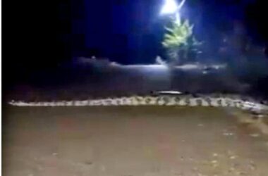 Uma sucuri gigante, de aproximadamente sete metros, foi flagrada no meio de uma estrada no município de Japurá-AM, na noite desse domingo…