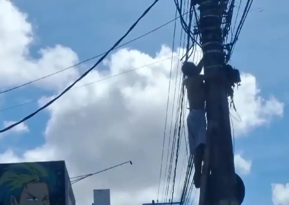 Homem é flagrado tentando roubar fiação de poste no Tancredo Neves