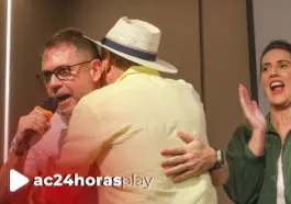 Assuero Doca Veronez, presidente da Federação da Agricultura e Pecuária do Acre (Faeac), saudou o prefeito de Rio Branco, Tião Bocalom, após anúncio de pré-candidatura