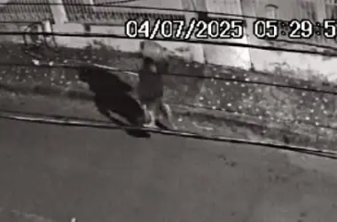 Um homem ainda não identificado foi flagrado por câmeras de segurança pulando uma residência para furtar uma botija de gás, no bairro Bela Vista, em