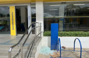 Uma das portas de vidro da entrada da única agência do Banco do Brasil, em Cruzeiro do Sul, foi quebrada na noite…