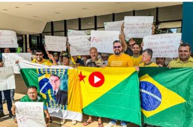 Manifestantes que se autointitulam “verdadeiros patriotas” se reuniram na manhã deste domingo (6), em frente à Assembleia Legislativa do Acre (Aleac), em Rio Branco, para