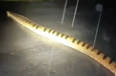 Uma sucuri de aproximadamente cinco metros foi flagrada atravessando a BR-364, nas proximidades de Manoel Urbano, interior do Acre. O registro foi feito por profissionais