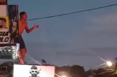 Um homem que não teve o nome divulgado está em cima do telhado de um comércio no bairro Remanso, em Cruzeiro do Sul, ameaçando se