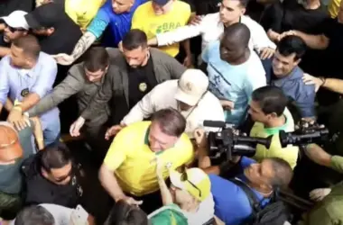 O ex-presidente Jair Bolsonaro (PL) chegou para o ato em defesa da anistia para envolvidos no 8 de Janeiro, que…