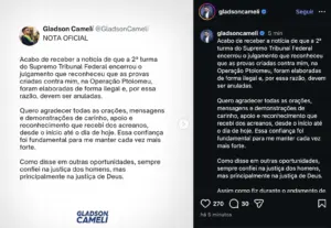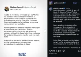 O governador do Acre, Gladson Cameli, reagiu nas redes sociais na noite desta sexta-feira (20) após o encerramento do julgamento da Segunda Turma do Supremo