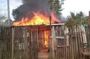 Uma casa construída em madeira pegou fogo na manhã desta sexta-feira, 02, no Bairro Tancredo Neves, que fica na região Norte da cidade. A causa
