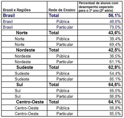 As regiões Nordeste e Norte obtiveram os piores resultados da Prova ABC (Avaliação Brasileira do Final do Ciclo de Alfabetização). O exame tem como objetivo