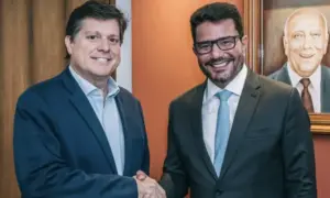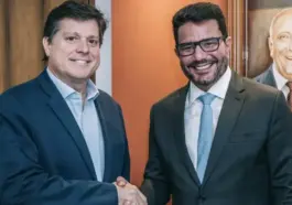 O governador do Acre, Gladson Cameli (PP), publicou, na tarde desta quarta-feira (10), uma foto ao lado do presidente nacional do MDB, Baleia Rossi, durante