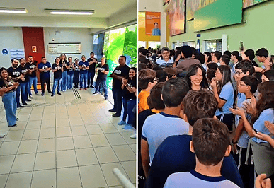 O último dia de aula dos alunos do terceirão do Colégio Anglo Acre foi marcado por emoção, abraços e lágrimas. Em um gesto simbólico, os