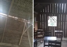 Alunos da Escola Estadual José Mororó de Oliveira, localizada em Rodrigues Alves, interior do Acre, denunciam as condições da unidade de ensino, que fica na