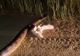 Mais uma sucuri de grande porte foi vista e filmada em Cruzeiro do Sul, desta vez na Estrada do Pentecostes. As imagens, que circulam nas