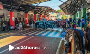 Movimento Estudantil realizaram um protesto no Terminal Urbano de Rio Branco pedindo tarifa zero e criticando a gestão de Bocalom e a empresa Ricco. Apesar