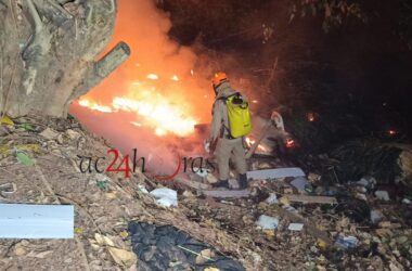 Uma área de vegetação situada às margens do Rio Acre, em frente ao Instituto São José, na rua Floriano Peixoto, no bairro Papouco, foi incendiada