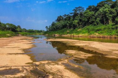 A seca no Rio Acre na capital do Acre formou uma praia de aproximadamente 250m² a cerca de 400 metros acima da Estação de Tratamento