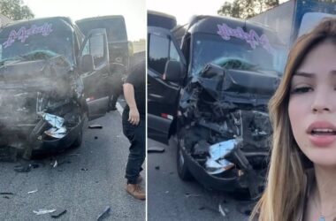 A cantora Melody sofreu um acidente na estrada a caminho de um show no Rio de Janeiro (RJ), neste sábado, 20. A van com a