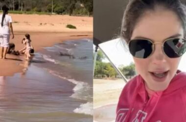 Bárbara Evans, 33, mostrou a babá dos filhos usando uniforme na praia e explicou o motivo. O que aconteceu A influenciadora mostrou um passeio de