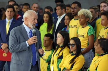 O presidente Luiz Inácio Lula da Silva recebeu, nesta quinta-feira (11), no Palácio do Planalto, em Brasília, atletas que vão representar o…