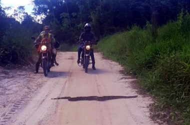 Uma cobra da espécie jiboia com cerca de 2 metros e meio foi vista atravessando o Ramal do Esquerdo, no município de Rodrigues Alves, nesta