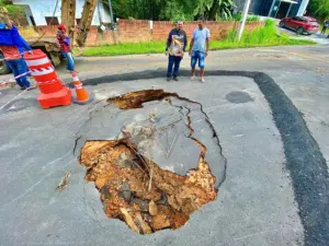 Criminosos armados invadiram uma loja de variedades localizada no estacionamento de um supermercado, na Estrada do Aviário, no bairro Aviário, e cometeram um roubo na