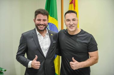 O governador Gladson Cameli (PP), ao lado do secretário adjunto de Esporte, Ney Amorim, divulgou nesta quarta-feira (22) os detalhes da organização da Supertaça Acreana