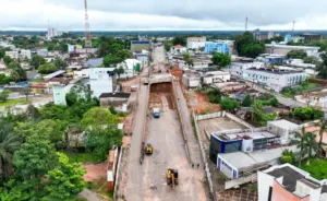 O governador Gladson Camelí esteve na obra do viaduto que integra a Avenida Getúlio Vargas à Avenida Ceará, em Rio Branco, e informou que o