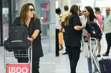 Ana Carolina, 49, foi clicada com a nova namorada, Ramona Bakker, 46, no aeroporto Santos Dumont, no Rio de Janeiro, na tarde desta quarta-feira (1).