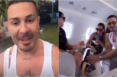 Carlinhos Maia, 32 anos, compartilhou registro de viagem em seu jatinho particular ao lado de duas de suas funcionárias, Adriana e Ana Cássia, nesta terça-feira,