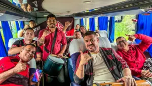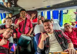 A movimentação na Praça da Revolução marcou o embarque de mais de uma centena de torcedores rumo ao Peru. A caravana organizada pelo Consulado do