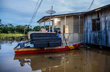 Com o Rio Acre registrando 14,90 metros e ainda sem sinal de vazante, as cidades acreanas de Brasiléia e Epitaciolândia já enfrentam a segunda maior