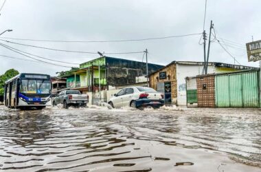 A rua Nossa Senhora da Conceição, localizada no bairro 15, em Rio Branco, sofre com alagamentos em decorrência da forte chuva que caiu no Acre