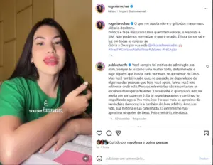 A influenciadora digital Rogéria Rocha utilizou as redes sociais neste domingo (25) para fazer críticas ao sistema político brasileiro, afirmando que o país vive uma