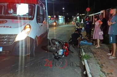 Uma colisão envolvendo uma motocicleta e uma caminhonete deixou o motoboy Esmael Silva de Almeida, de 40 anos, gravemente ferido na noite desse domingo, 3,