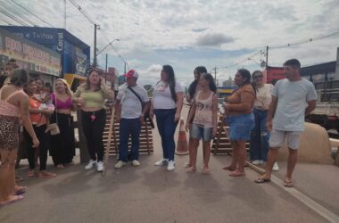 Dezenas de moradores dos bairros atingidos pela enchente do Rio Acre no início do ano fecharam parte da Avenida Ceará na manhã desta segunda-feira, 4,