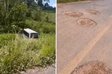 Mais um motorista perdeu o controle do veículo por causa dos buracos na BR-364 e caiu em um barranco às margens da rodovia federal. O